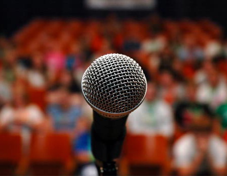 Ведущий громко и отчётливо произносит в микрофон: «Слово предоставляется ТрандЕ ИвановнЕ!»